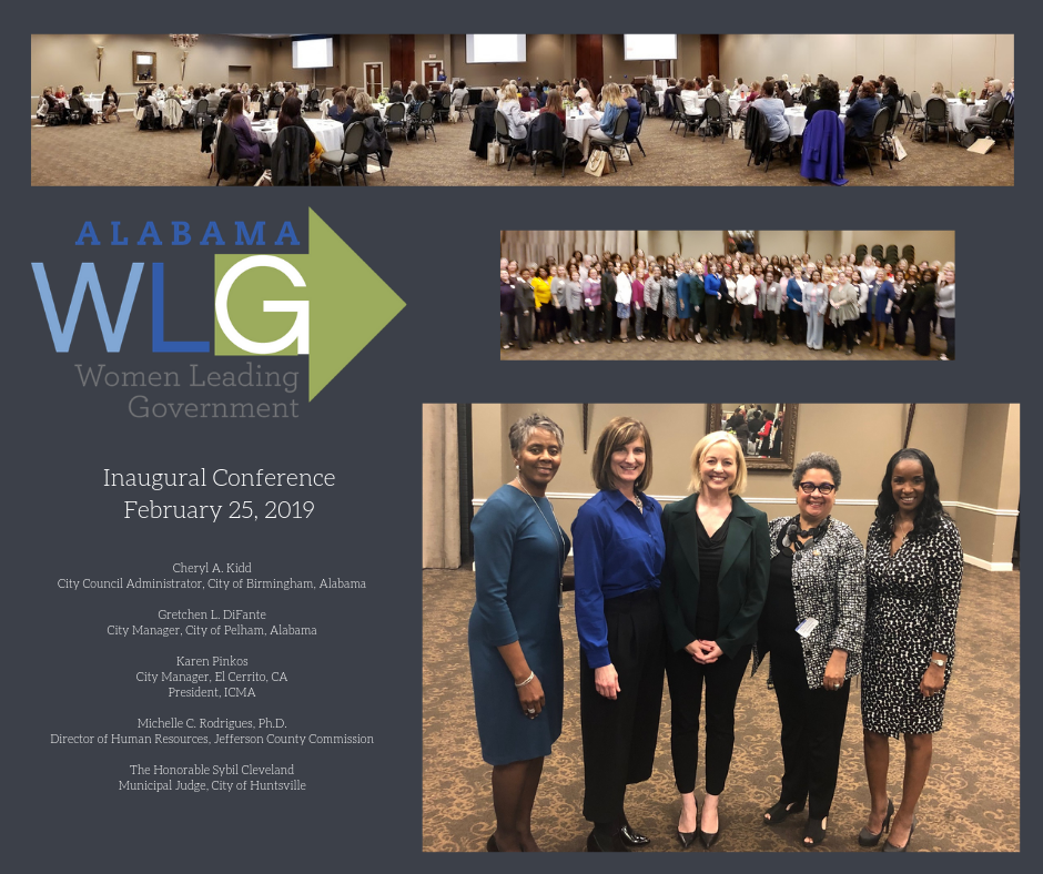 Karen Pinkos, City Manager in El Cerrito, California and ICMA President, was joined by a slate of Alabama local government executives as the newly formed state chapter of Women Leading Government (WLG) held its Inaugural Conference on Monday, February 25, 2019, at the Pelham Civic Complex & Ice Arena. Over 140 women, representing more than 20 municipalities and counties from across the state, gathered to network and take advantage of educational opportunities offered at the conference.